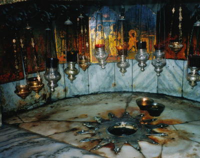 じつはここがかのキリストが生まれた馬小屋の後なんです。