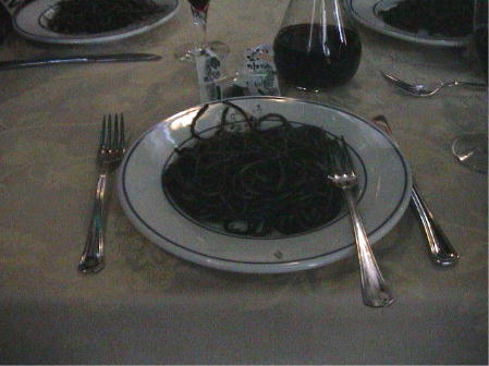 次はちょっと暗いので判り難いのですが、「イカスミのパスタ」
